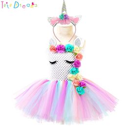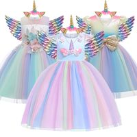 Girls Unicorn Costume Dress Princess Flowers Rainbow Dresses Up