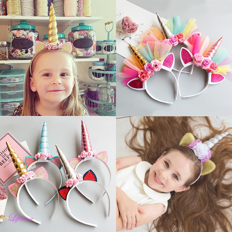 Unicorn Headband Halloween Party Flower Hair Band For Baby