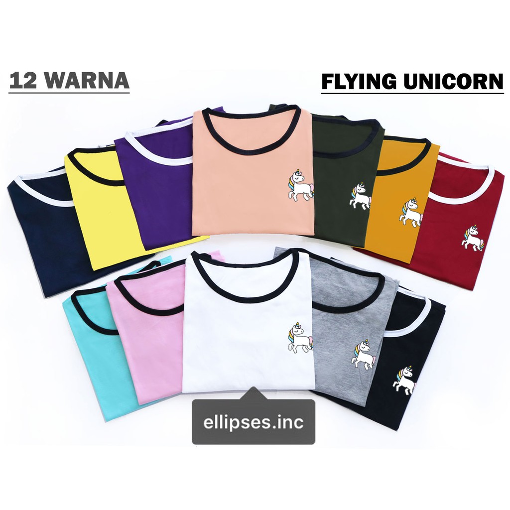 Jual Ringer Tee Kaos Wanita Lengan Pendek Flying Unicorn Warna