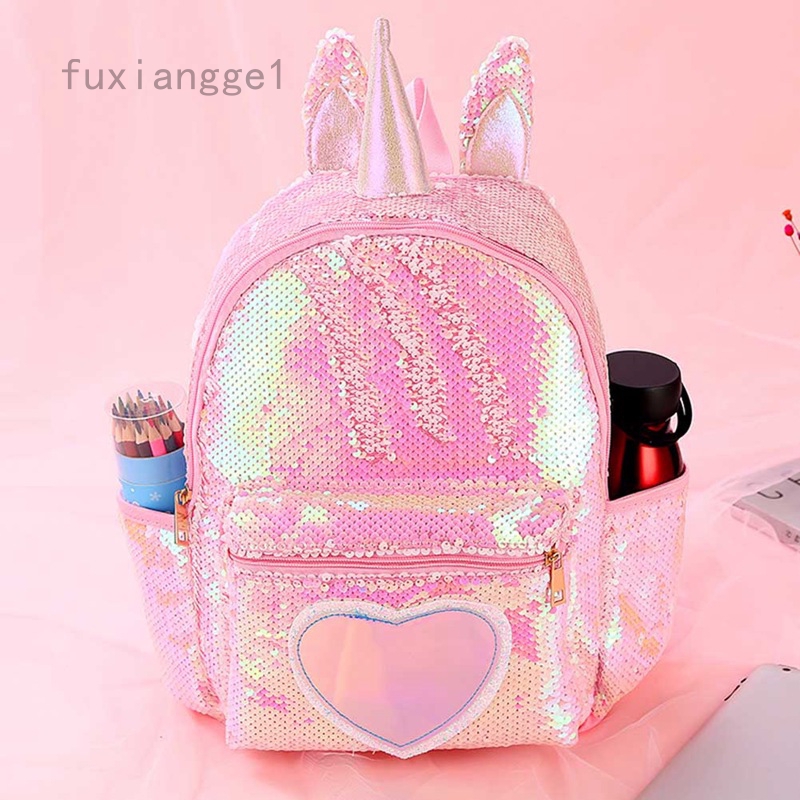 Fuxiangge1 Unicorn Sequin Backpack Girls Back To School Rucksack Travel Kids Bag Nice Shopee Indonesia