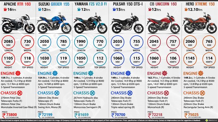 Apache Rtr 160 Vs Suzuki Gixxer Vs Yamaha Fzs Vs Pulsar 150 Vs