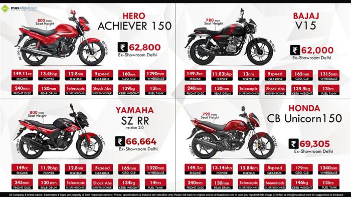 Hero Achiever 150 Bajaj V15 Honda Cb Unicorn 150 Comparison