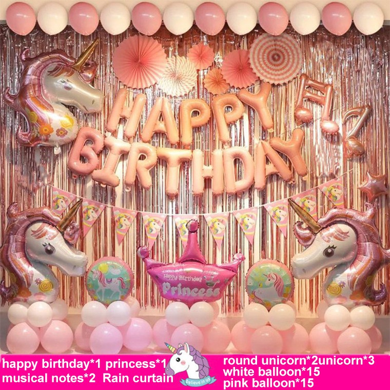 Birthday Party Decoration Set Girl Happy Birthday Unicorn Balloon