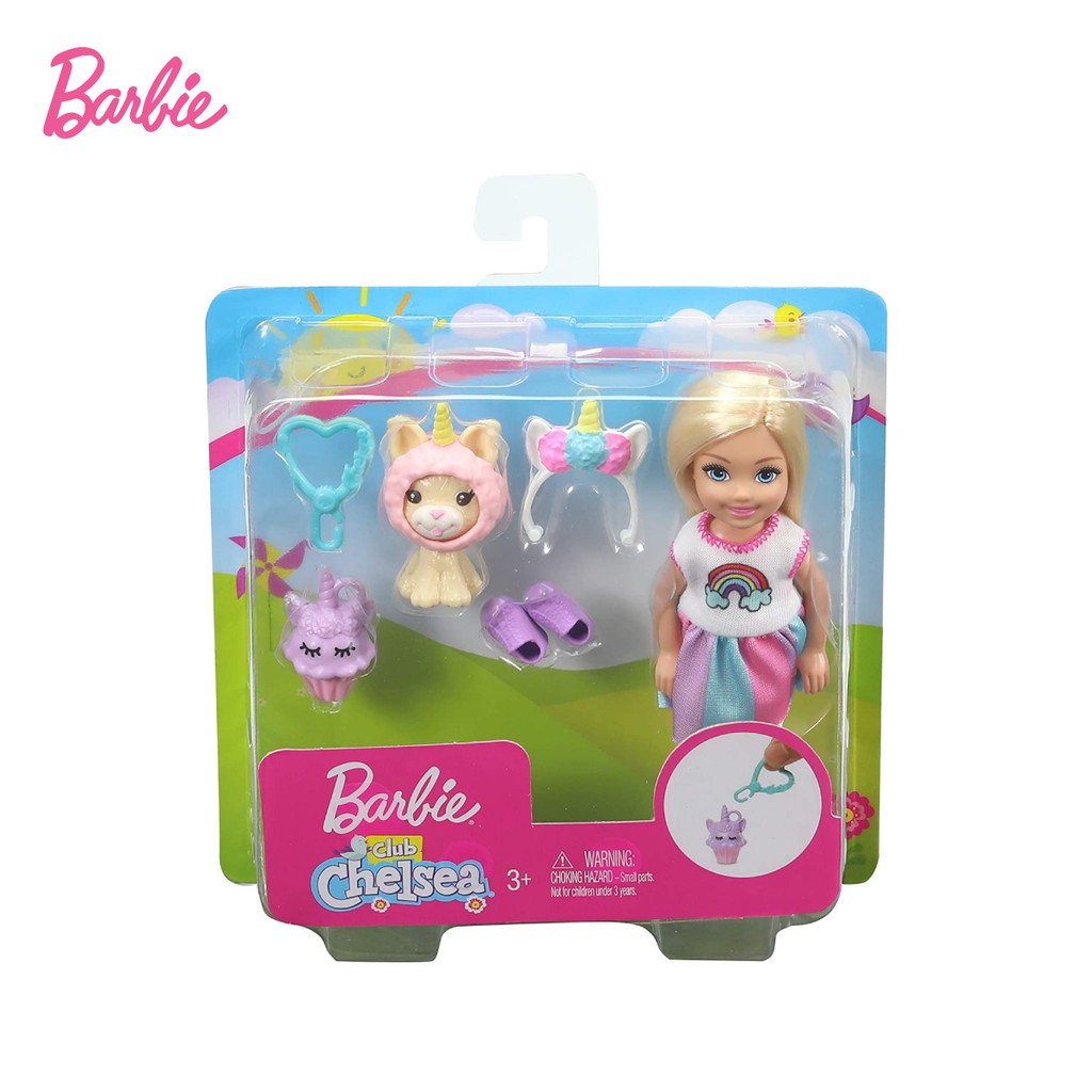 2322 chelsea doll and her friends can play out so many fun storiesthe 6 inch doll sets imaginations soaring with a unicorn graphic on her pink bodice and white stars on her removable blue skirtbright yellow shoes complete the look and are also removableadded diversity and more variety in looks and. Barbie frl82 club chelsea red head with kitty top doll 853. Product title barbie club chelsea dress up doll in unicorn costume 6 inch average rating. A unicorn headpiece and purple shoes add to the dress up fun and her adorable kitty friend tags along in a matching unicorn costume.