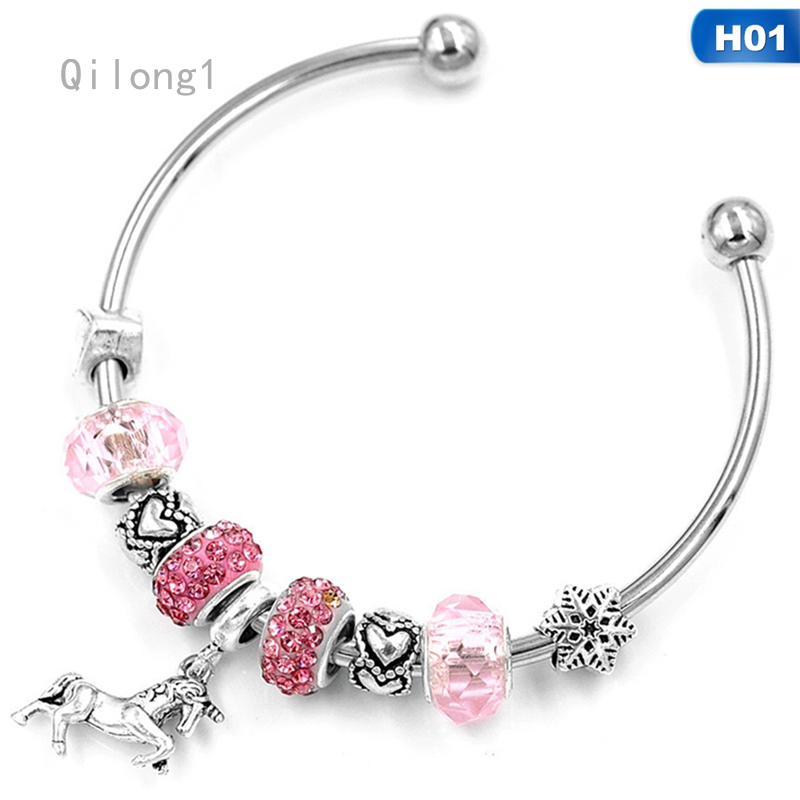Glass Bead Bracelets Bangles Unicorn Pendant Charm Bracelet Kids