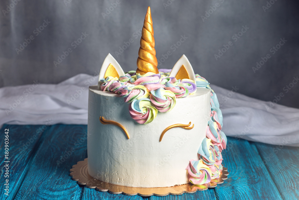 Beautiful Bright Cake Decorated In The Form Of Fantasy Unicorn