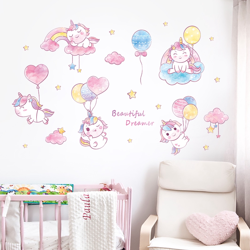 Art Posters Unicorn Wall Stickers Colorful Decal Wallpaper Stickers Birthday Christmas Gift Mural Decor Colorful For Kids Girls Room Beautiful Cute Bedroom Home