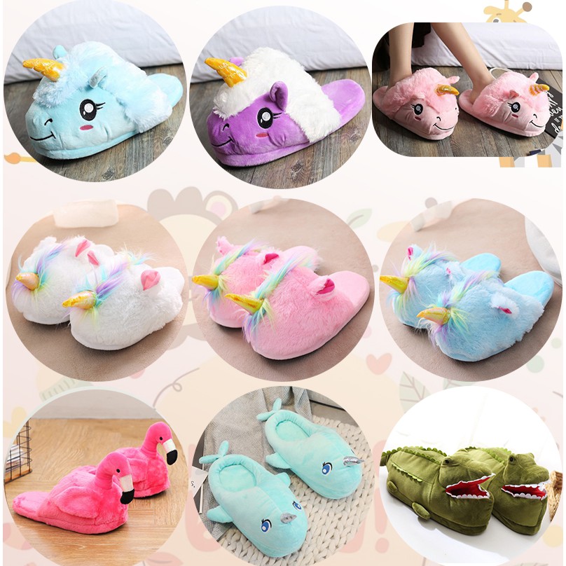 Cute Winter New Plush Animal Head Unicorn Slippers Cute Plush