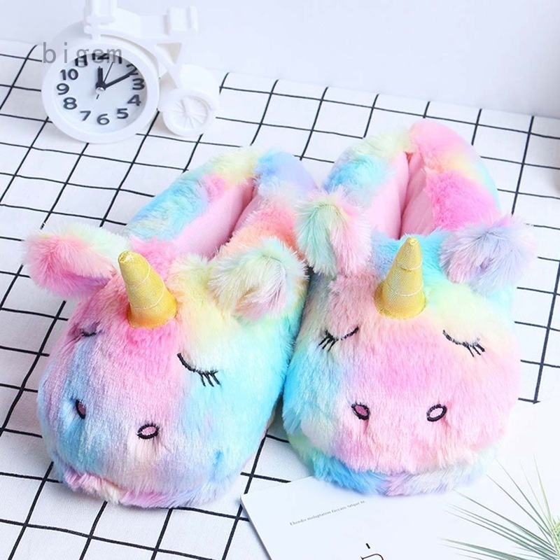 2020 Women Plush Unicorn Slippers Adult Girls Anti Slip Indoor