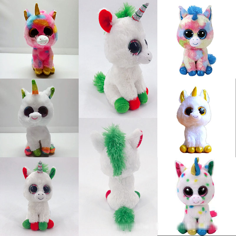 2020 18 Cm Cartoon Ty Beanie Boo Big Eyes Pony Unicorn Plush