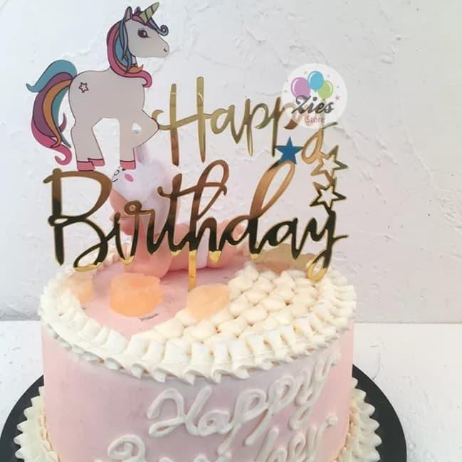 8w Cake Topper Happy Birthday Tusukan Hiasan Kue Acrylic Unicorn