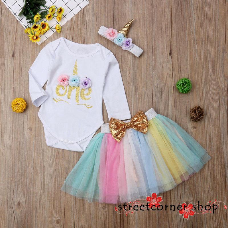 Baby Clothes Set 3pcs Baby Girl 1st Birthday Outfit Party Unicorn