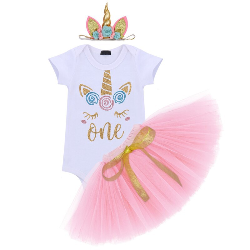 Shop 3pcs Baby Girl 1st Birthday Outfit Party Unicorn Romper Cake