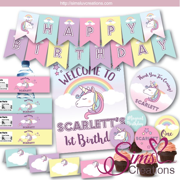 Pastel Unicorn Party Kit Rainbow Birthday Party Printables