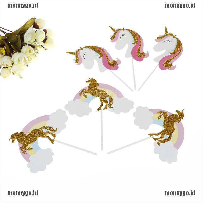 Jual Oem Glitter Gold Unicorn Cake Toppers Cupcake Picks Wedding