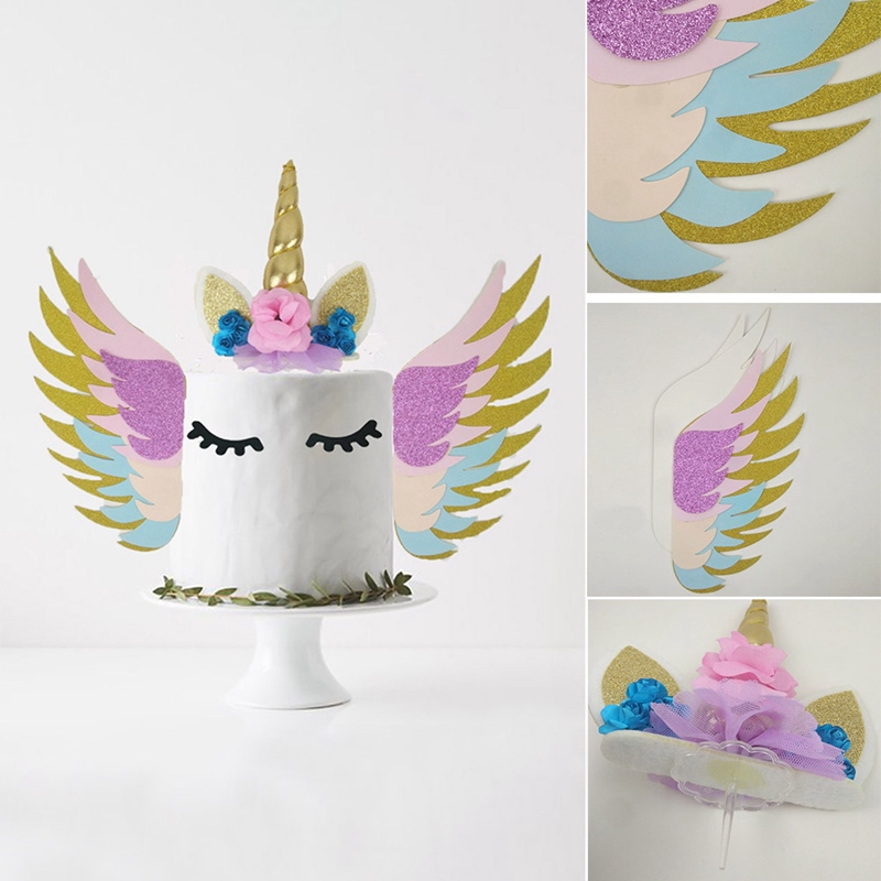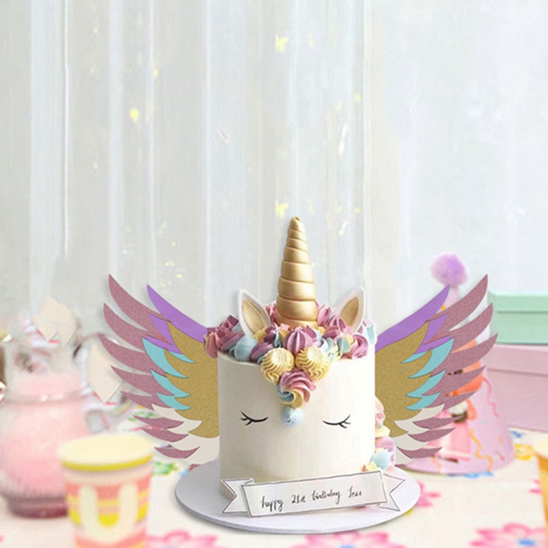 Happy Birthday Party Cake Decoration Unicorn Wing Cake Topper Horn