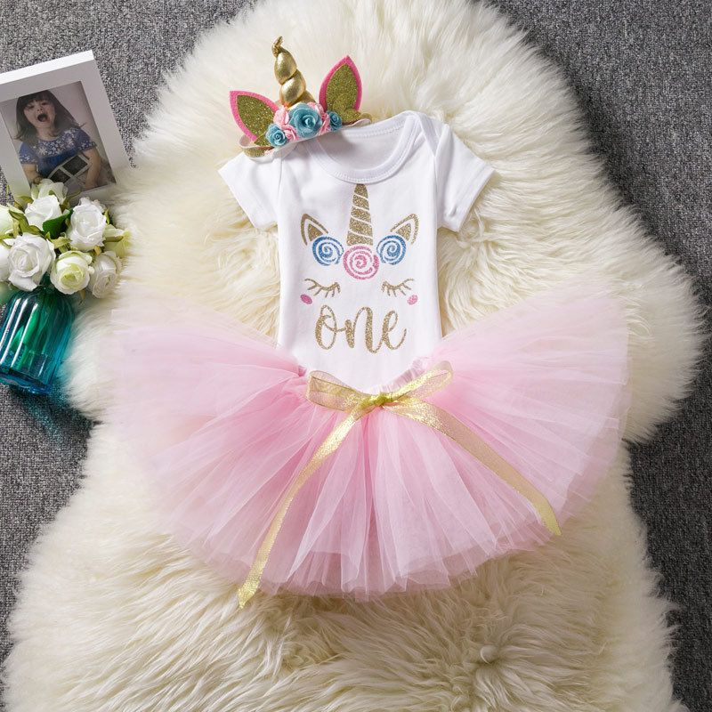 Unc29 Baby Girl 1st Birthday 3pcs Unicorn Outfits With Headband