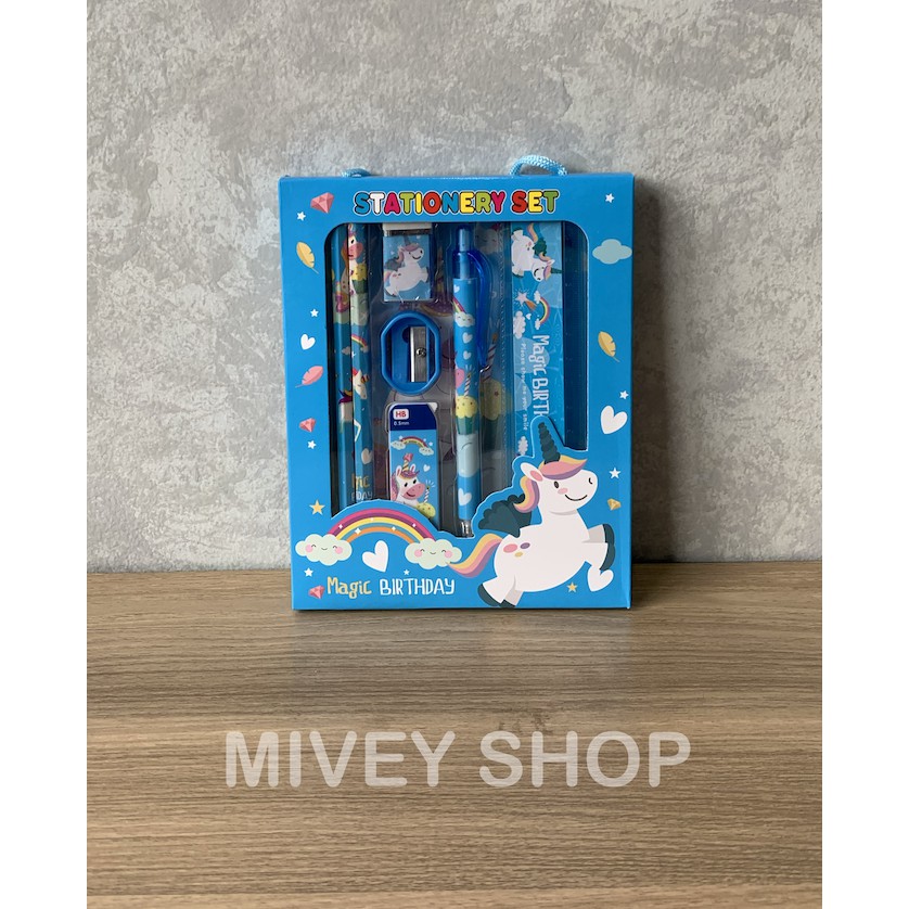 Stationery Set Unicorn Warna Biru Paket Alat Tulis Anak Sekolah Di
