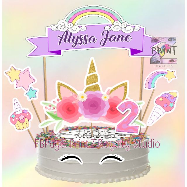 Unicorn Theme Cake And Cupcake Topper With Personalized Name And