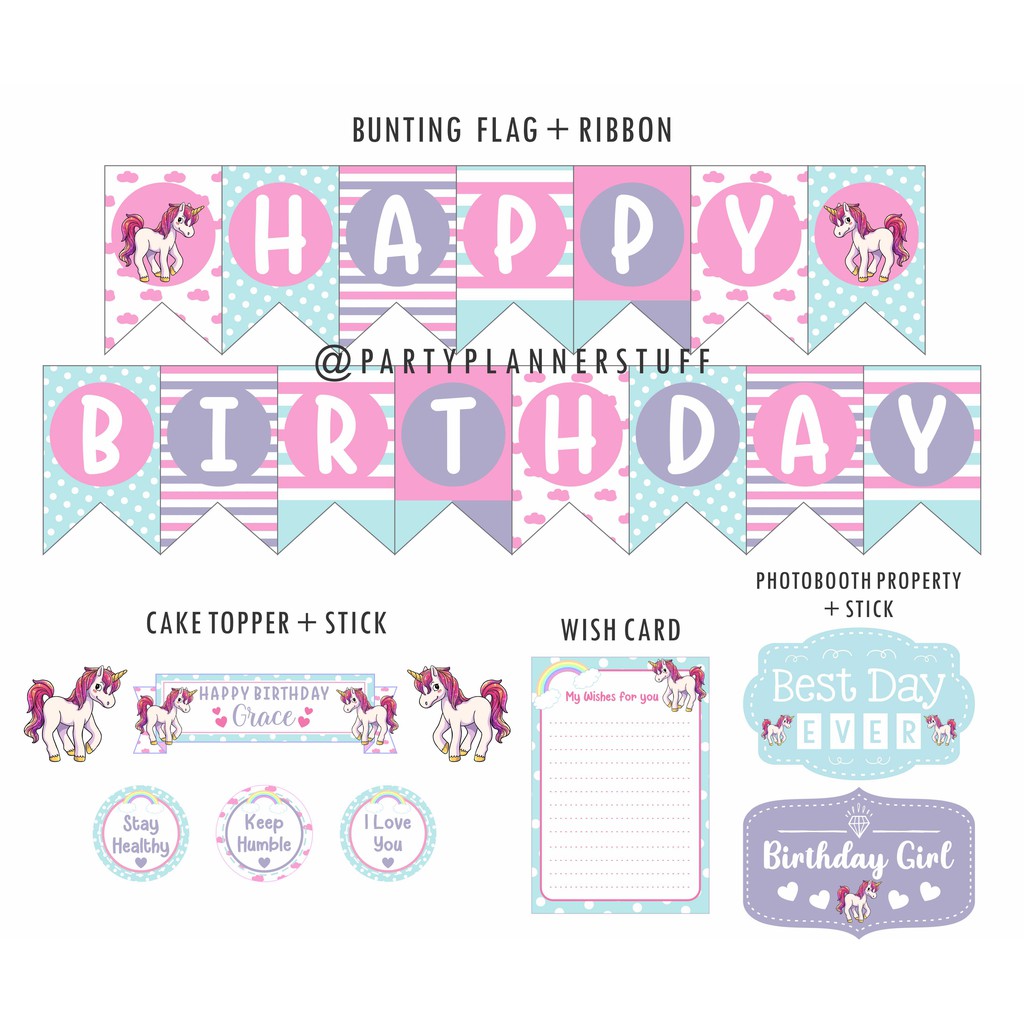 Birthday Package Unicorn Bunting Flag Banner Happy Birthday