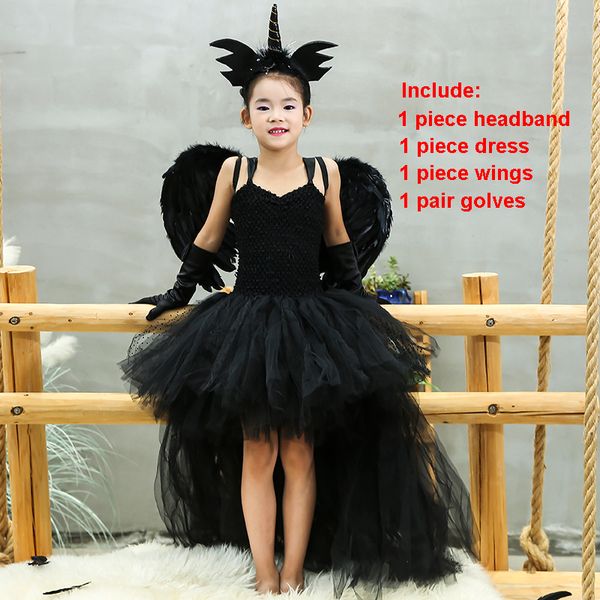 2020 Halloween Dark Unicorn Costume Tutu Dress V Neck Kids Girls