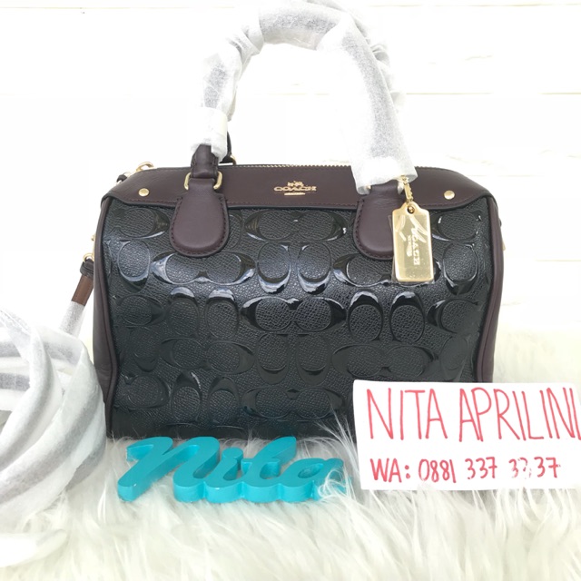 Tas Coach Mini Bennett Signature Debossed Black Mix Oxblood Asli