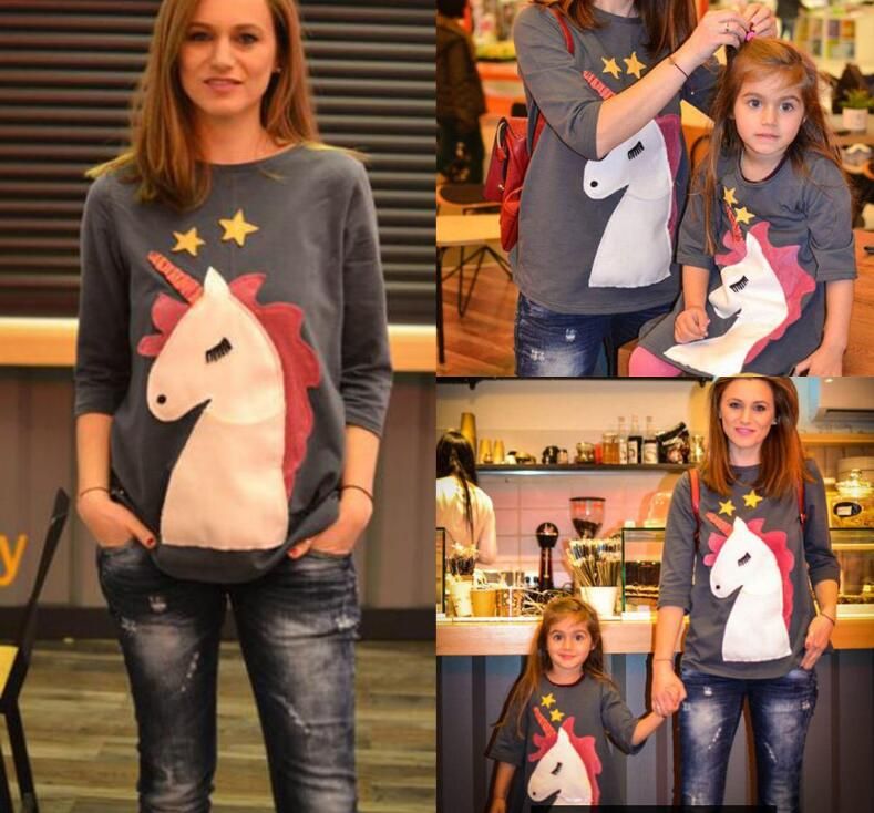 Mommy And Me Sweater Shirts Autumn Cartoon Unicorn Family Clothes