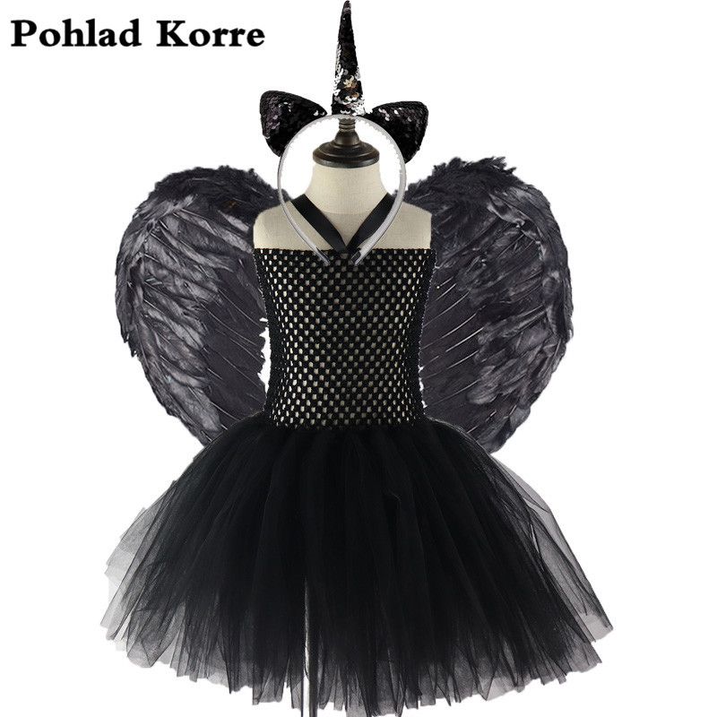 2020 Child Black Feather Unicorn Headband Girls Tutu Dress