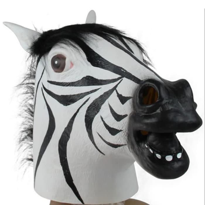 Zebra Horse Mask Topeng Kuda Hewan Animal Bahan Latex Halloween