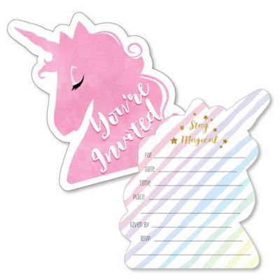 Amazon Com Amztm Magical Unicorn Party Invitations With Envelopes For Kids Birthday Baby Shower Unicorn Party Supplies 20 Pieces Of Fill In Blank Invitation Card Kit Kitchen Dining