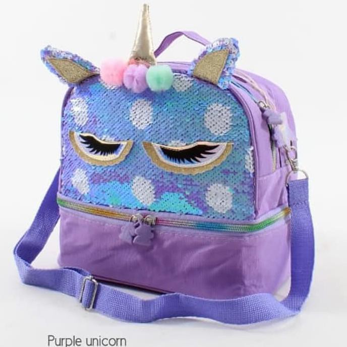 Tas Bekal Lunch Box Lunch Bag Selempang Sequin Purple Unicorn