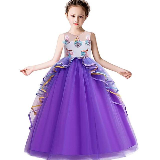 Dress Anak Cewek Bagus Pink Or Blue Or Purple Unicorn Flower Dress