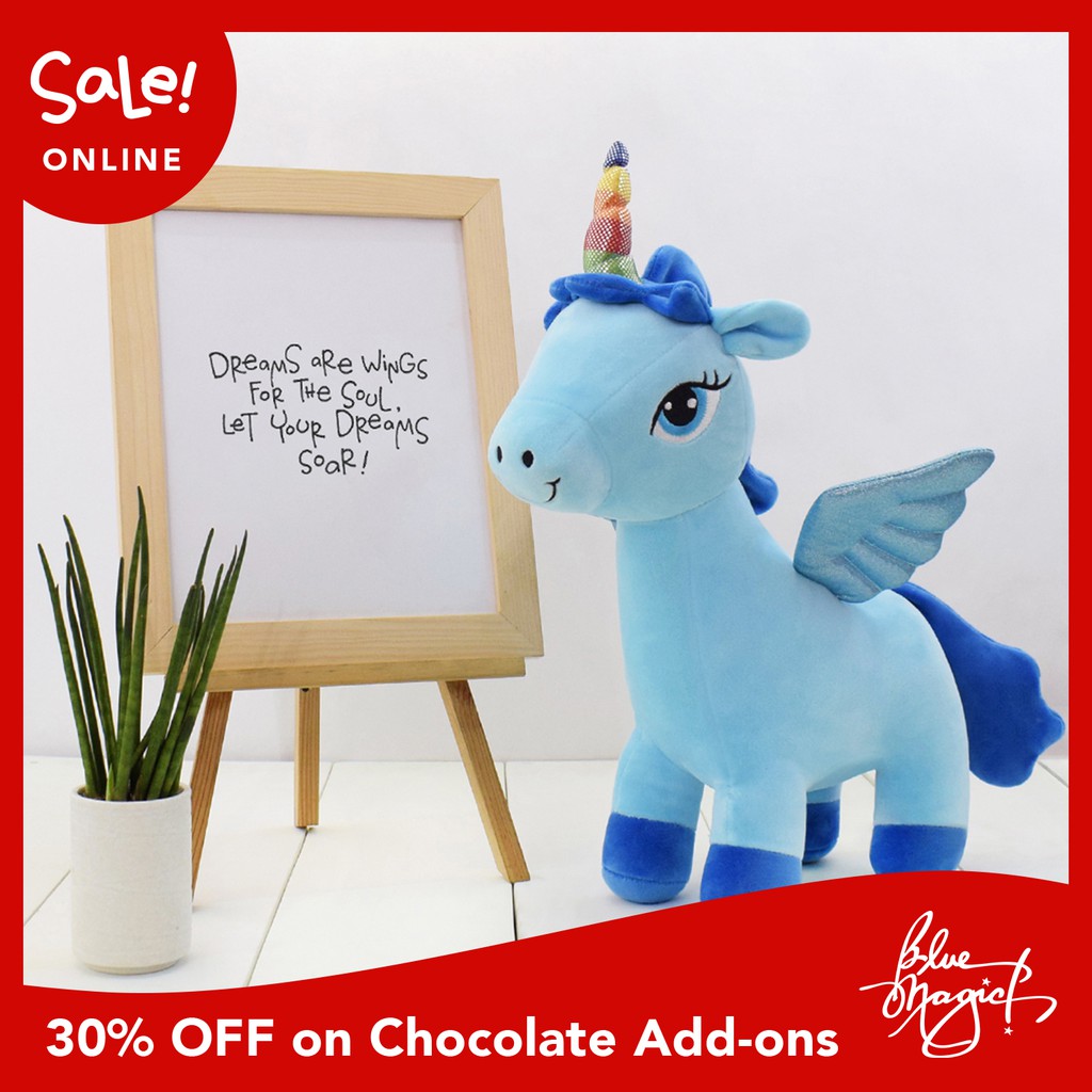 Unicorn Plush Toy With Sequins Wings Blue For Kids Lazada Ph