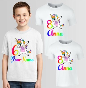Personalised Dabbing Unicorn T Shirt Your Name Age Boys Girls