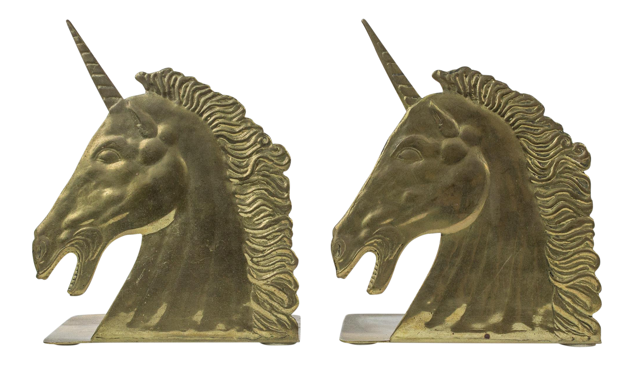Vintage solid brass unicorn sculpture mythical horse with horn statue fantasy collectible figurine paperweight desk accessory unearthedsalvage 5 out of 5 stars. I found these great brass unicorn bookends at a high end estate sale. Who says you cant find unicorn bookends. Stylish pair of dimensional brass unicorn bookends upright on stands.
