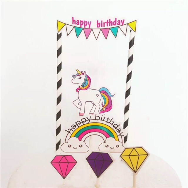 Jual Happy Birthday Unicorn Cake Topper Hiasan Kue Jakarta