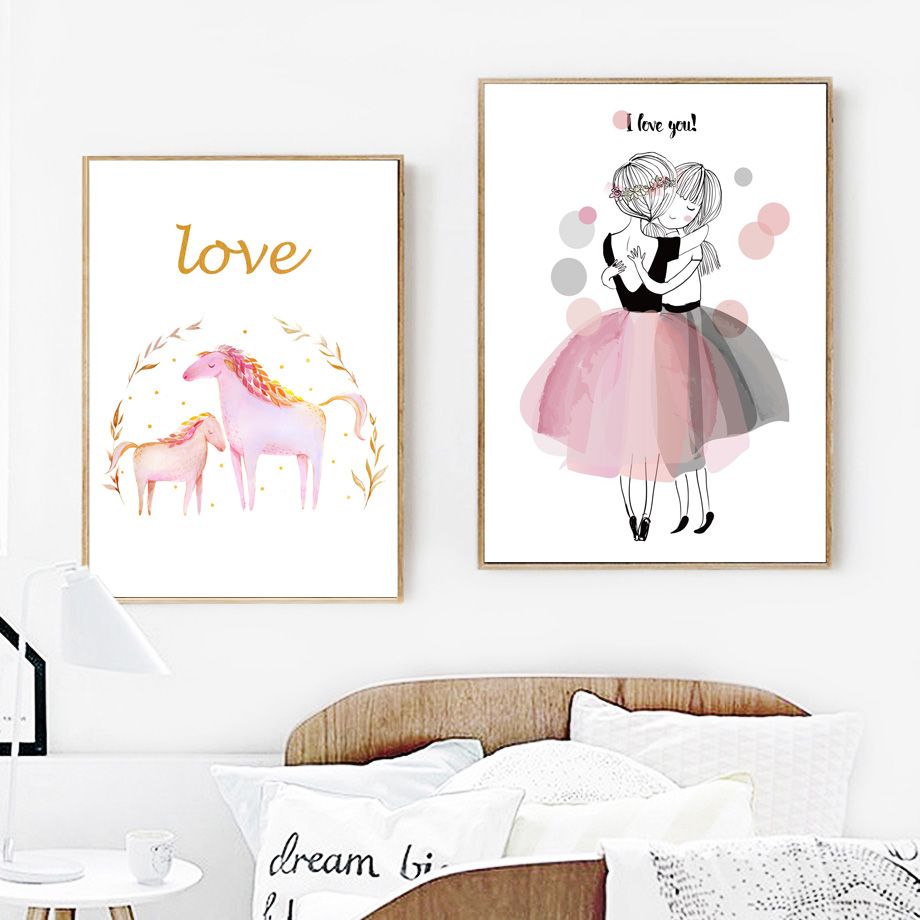 2020 Watercolor Pink Girl Unicorn Wall Art Canvas Paintings Nordic