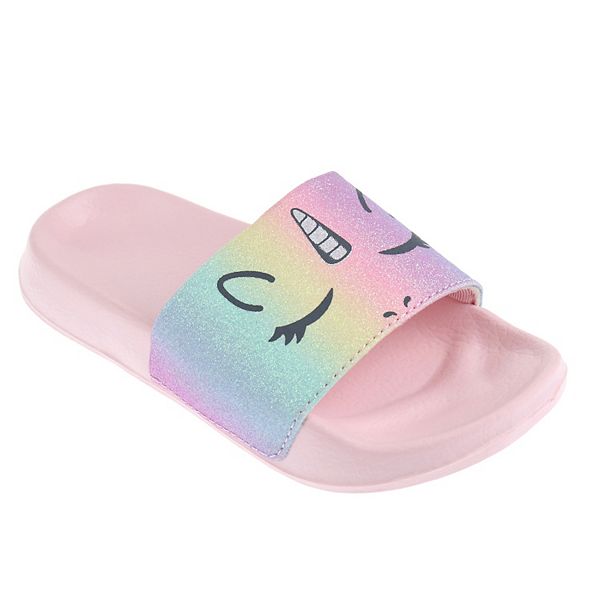 Girls 4 12 Elli By Capelli Rainbow Unicorn Slide Sandals