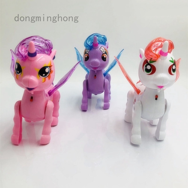 Dongminghong Mainan Unicorn Elektrik Berjalan Bernyanyi Lampu Tali