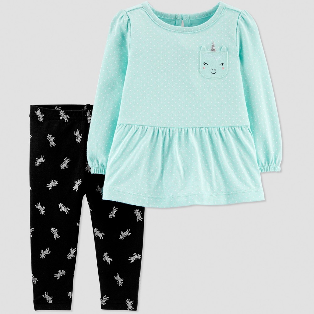 Carter S 2 Piece Cat Unicorn Peplum Top Legging Set Baby Girl