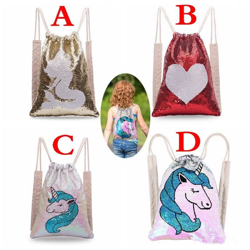 2020 Cartoon Unicorn Mermaid Drawstring Bags Kids Sequins Draw