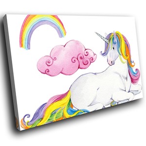 Pink Kids Cartoon Unicorn Funky Animal Canvas Wall Art Large