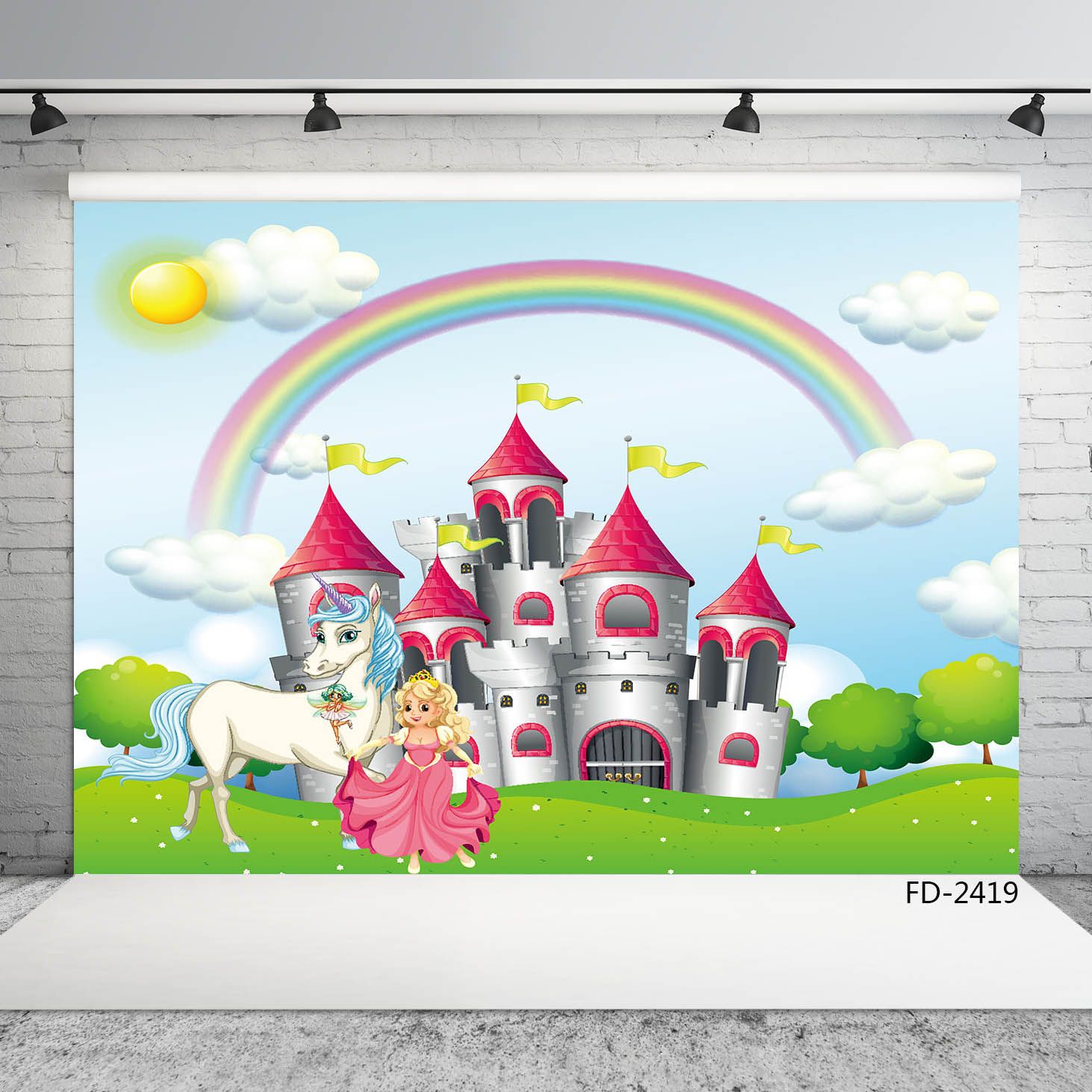 2020 Castle Unicorn Rainbow Vinyl Cloth Photography Background
