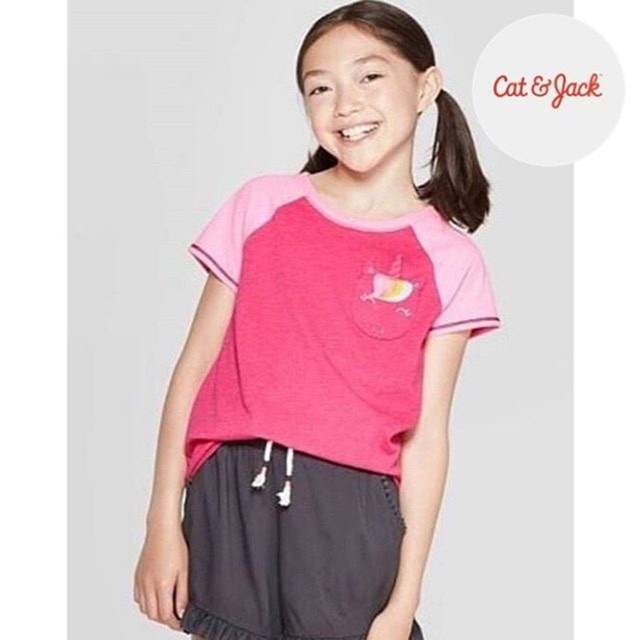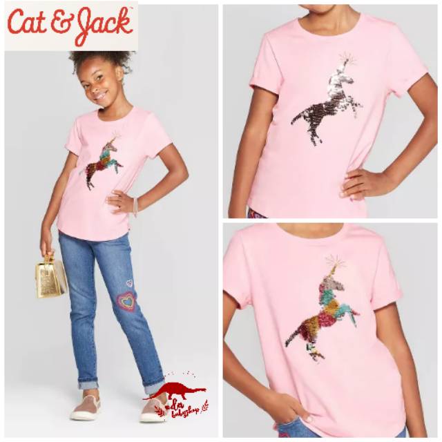 Cat Jack Girls Pocket Tee Pink Unicorn Shopee Indonesia