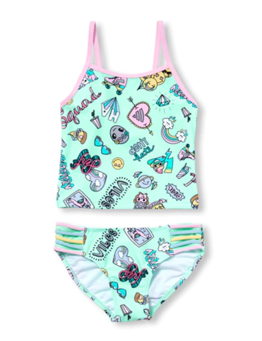 Sales For Girls Fun Fetti One Piece Swimsuit Skirt 2pc Set Cat