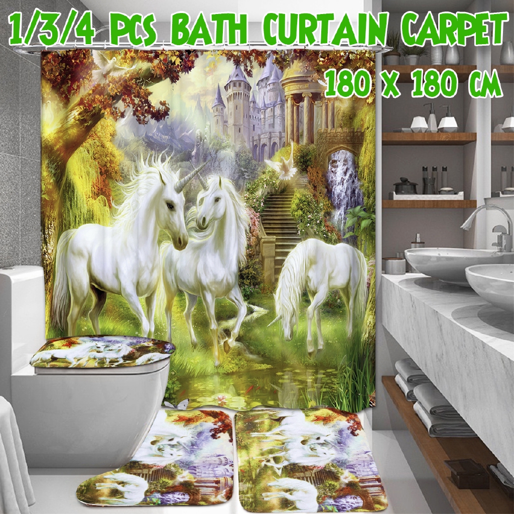 Qoo10 Wonzom 3d Giraffe Shark Cat Unicorn Shower Curtains With