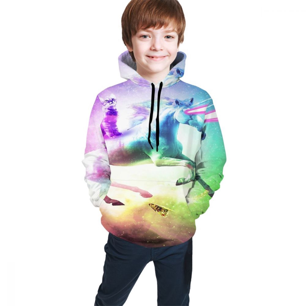 Fashion Youth Pullover Hoody Cat Riding Laser Unicorn Teen Hooded Sweate Sweatshirt Long Sleeve Hoodies Boys Girls Shopee Malaysia
