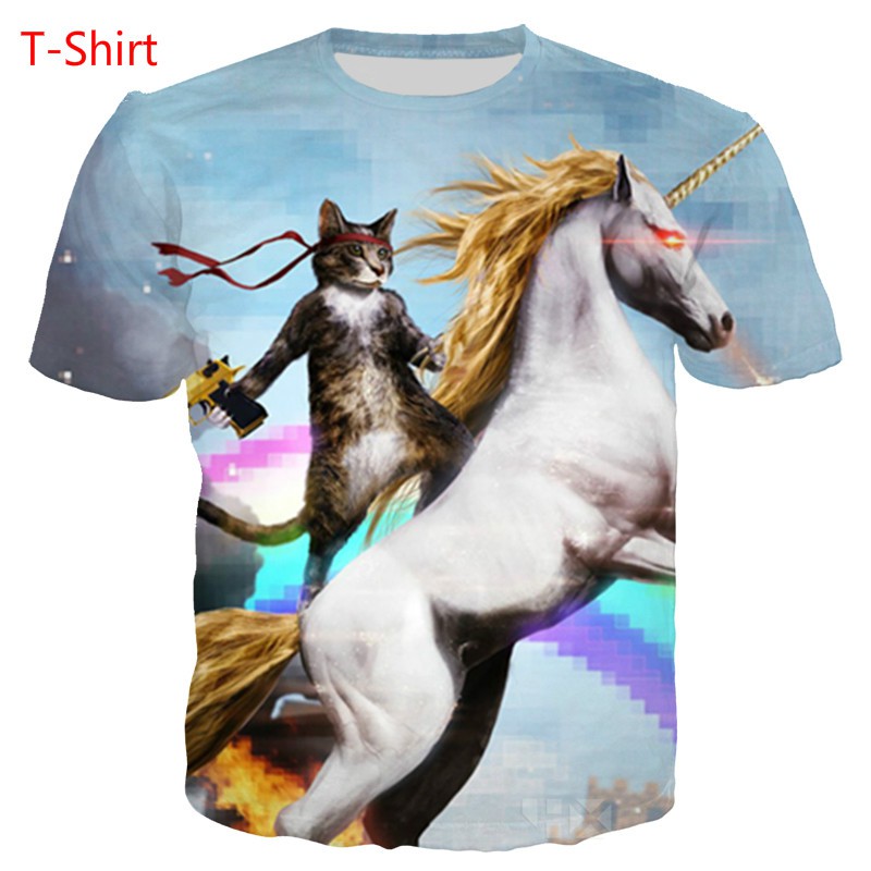 Istider 2018 Summer Style Funny T Shirt Cat Riding Unicorn 3d