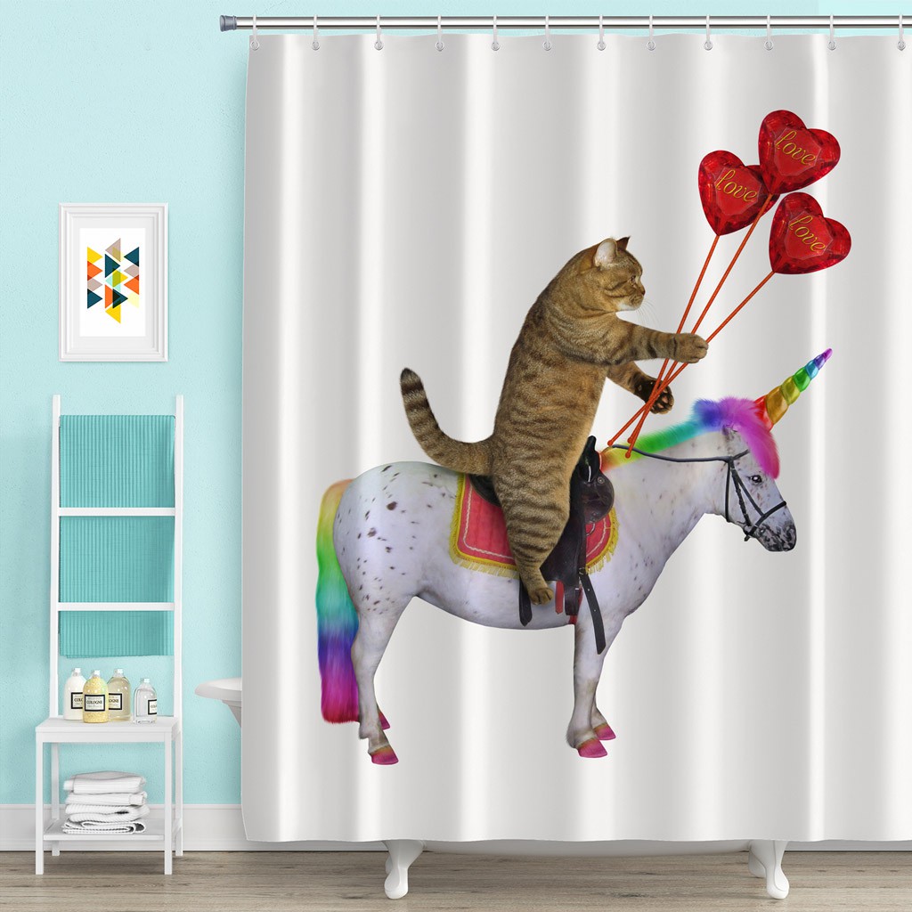 Funny Cartoon Cat Riding Unicorn Shower Curtain Gojeek