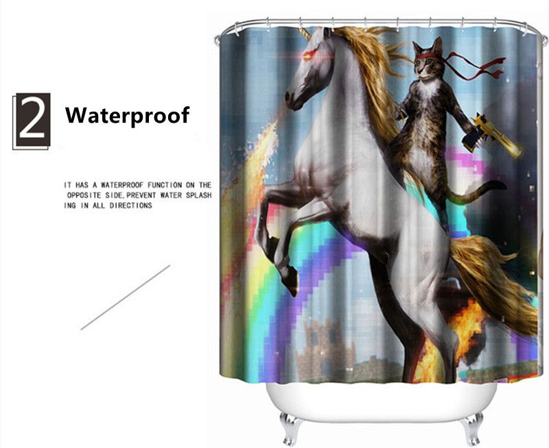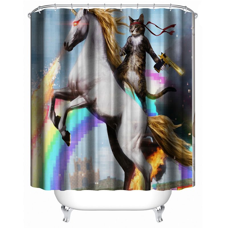 Home Garden 72 79 Gun Cat Riding Unicorn Bathroom Fabric Shower